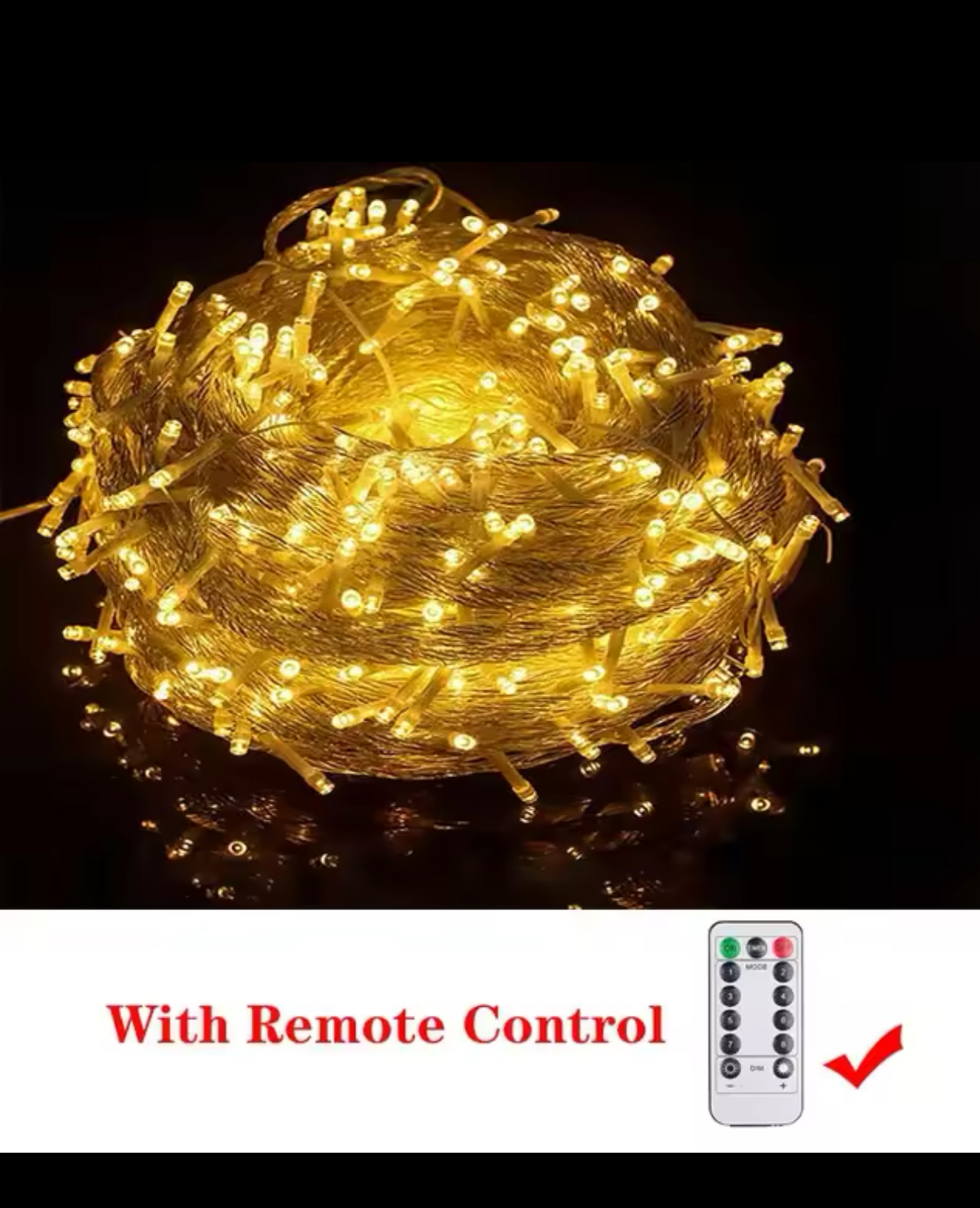 Télécommande 8 fonctions:1. Combinaison; 2. Dans les vagues; 3. Séquentiel; 4. Lueur lente; 5. Chasse/Flash; 6. Décoloration lente; 7.Twinkle/Flash; 8. Stable su